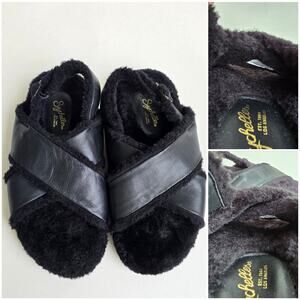 Faux Fur Sandals Seychelles No Such Thing Size 7 Black Leather Slipper Slingback
