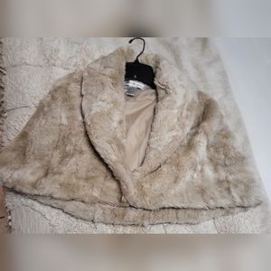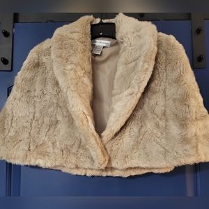 Beige Faux Fur Shawl with hooks for closure. It's very elegant to wear on a chilly night over a beautiful evening gown. From Newsport News Fashion