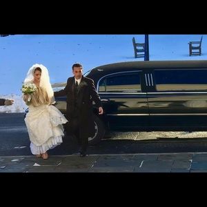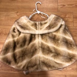 Faux Fur Shell. Bought from Lord and Taylor, designed is Eliza J. It's an XL but I usually wear a S/M in tops and this fit me just fine. I bought it for my January wedding and it worked beautifully but I don't need it anymore.