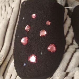 Faux Fur Slippers Sleep Mask Jeweled Embellished LOVE XL NEW