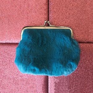 Faux Fur Snap Closure Soft Coin Purse - Blue