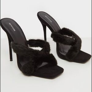 Pretty Little Thing, Faux Fur Strap sandals. These are super sexy, and versatile. Size 9 US, great for wider feet. Never worn, no box.
