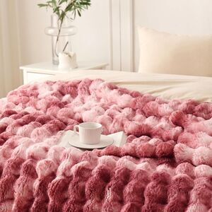 Faux Fur Throw Blanket, Soft Cozy Plush Fleece Twin (60" x 80") Tie Dye magenta