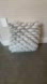 Luxurious faux fur throw pillows. Features a stylish gray and white pattern. Perfect for adding texture to any room. Luxurious texture.