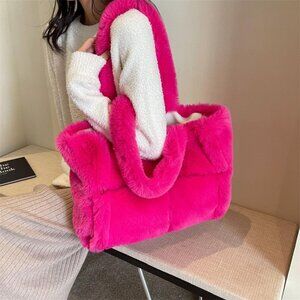 Faux Fur Tote Bag Large Shoulder Handbag Plush Furry Top Handle Women