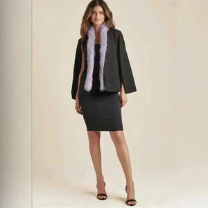 A cape is the piece you didn't know your wardrobe was missing. More unexpected than a traditional jacket, this layer is an elevated statement piece to boot. The defining detail: Removable faux-fur trim in a dusty lavender shade that takes the tailored topper from sleek and chic to oh-so luxe.