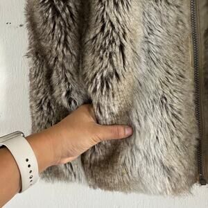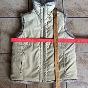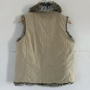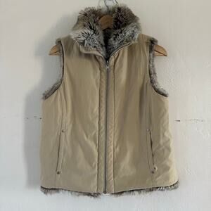 Faux Fur Vest Full Zip Pockets Brown Womens Reversible Size Medium