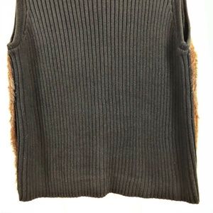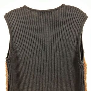 Excellent used condition - Women's Medium Faux Fur Vest/Sweater Brown/Black Zip Front - striped faux fur front - sweater back - easy care acrylic/cotton blend - hand wash - laying flat measures: 16" shoulders, 19" bust, 24" length. KIKIT MAURICE SASSON Womens Vest Faux Fur Medium Brown Sweater Back Zip Front