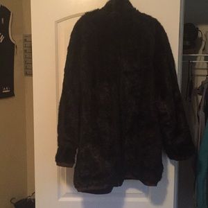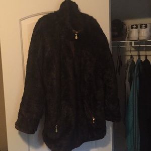 Dark brown faux fur jacket w/ gold zipper