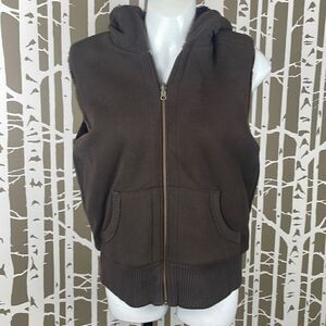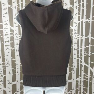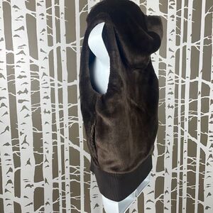 Faux Fur Reversible Hooded Zip Front Vest S M Chocolate Brown