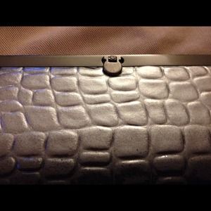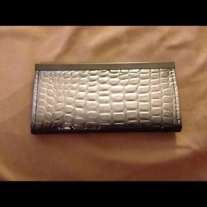 A BRAND NEW silver faux gator skin copy wallet. Never been used. Four sections with coin zipper. Practically perfect condition.