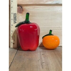 Faux Glass Fruit Decor. Apple and Orange Kitchen Decor.
