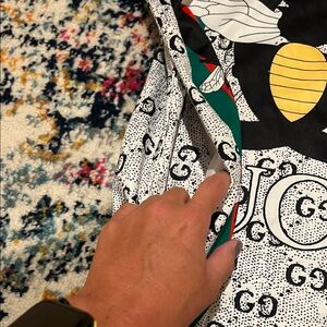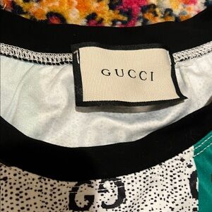 Elegant faux Gucci dress with iconic bee and logo pattern. Perfect for a stylish night in.