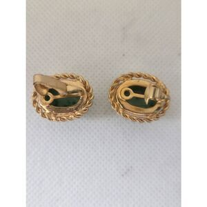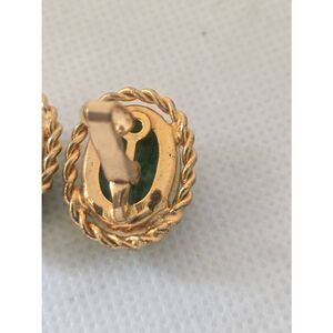 Faux Jadeite Oval Stud Gold Tone Rope Twist Design Clip-On Earrings