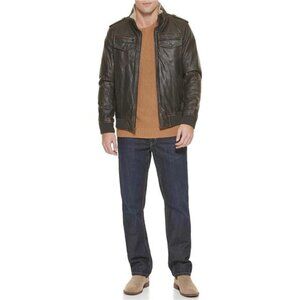 Faux Leather Aviator Bomber Jacket (Regular & Big & Tall Sizes)