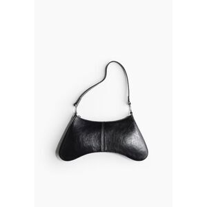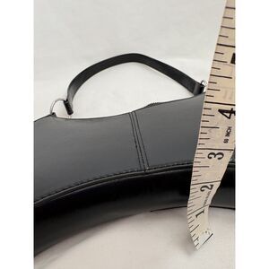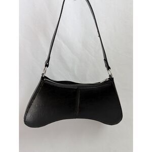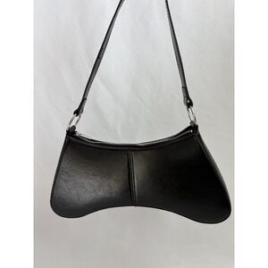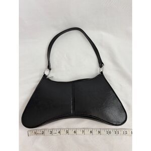 Faux Leather Black Shoulder Bag Classy Curved Minimalist Ring Detail Mini Purse