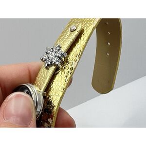 Faux Leather Charm Bracelet - Golden W/ 4 Snap & 2 Slide Snow Charm Christmas