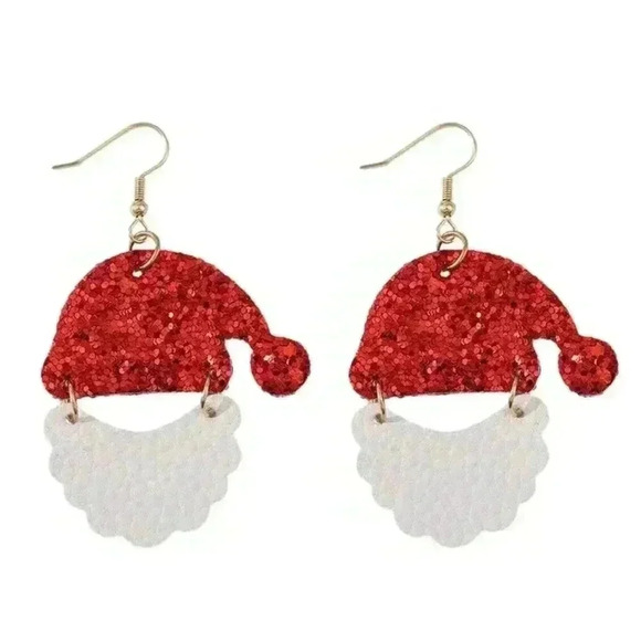Faux Leather Christmas Santa Hat and Beard Dangle Earrings