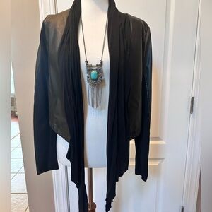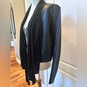 This chic faux leather cropped jacket features a unique waterfall scarf detail, functional pockets, and stretch panels for a comfortable fit. Originally $79, now just $20 due to a minor flaw on one shoulder from a hanger. —it can be repaired or patched, but I haven’t attempted to do so.