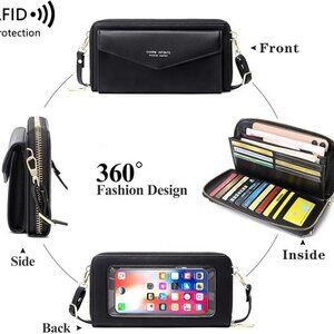 Faux Leather Crossbody Wallet for Women RFID Block Touch Screen Clear Window