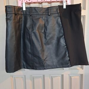 Faux Leather & Fabric Skirt Plus Sz2X? (No Label) Black Asymetric Zipper Short