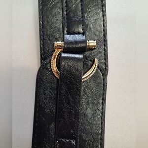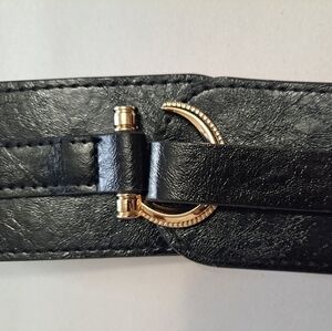 black 2.5" wide, gold hook & loop, elastic band, fits 27"-32"