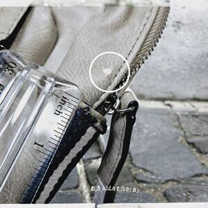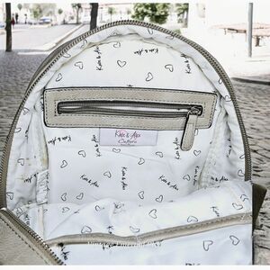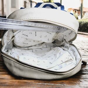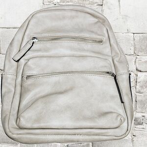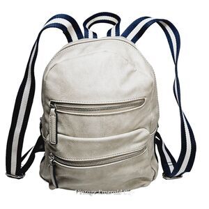 Faux Leather Gray Backpack Blue And White Belt Straps Travel Work Unisex READ