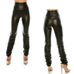 Faux Leather High Waist stretch Pants Legging with ruched leg