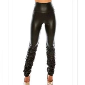 Faux Leather High Waist Pants with Outer Ruching From the Knee To the Ankle.