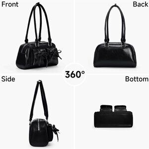 Faux Leather Ita Bag Japanese Shoulder Purse Compact Bow Gesture Tote