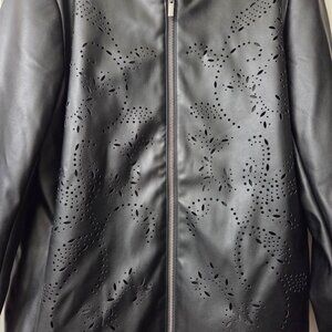 Black Faux Leather Jacket with cut out on Front.