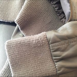 Chic gray faux leather, size large. Some pillings on sleeves and waist areas but otherwise in very good condition. Four pockets total. I might have gotten this from Forever 21 but can't be sure. Label reads Ambiance Apparel. Awesome jacket but it is now too big for me.