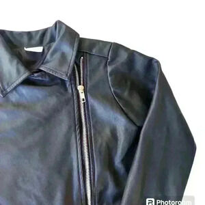 Faux Leather Kids Side Zip Black Jacket