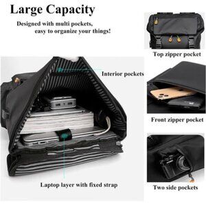 🧿1* main compartment with laptop layer and a inner zipper pocket, a flap zipper pocket, a front zipper pocket and 2 side pockets. Help you easy to organize your items.
