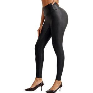 Faux Leather Leggings Women High Waisted Leather Stretch Tummy Control Medium