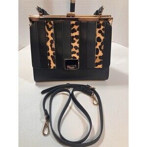 Faux Leather Leopard Calf Hair Dune London Womens Purse Satchel HandBag Black
