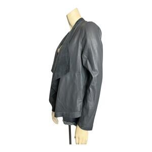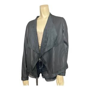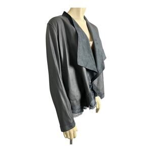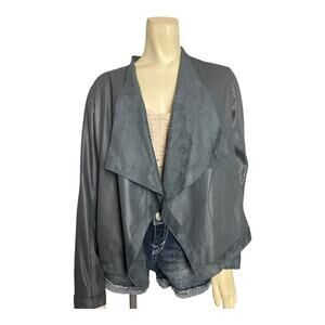Faux Leather Long Sleeve Open Front Jacket Gray Women's Size Casual Streetwear Pleather Vegan
