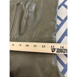 Faux Leather Mini Jumper Dress Olive Green With Pockets XXS