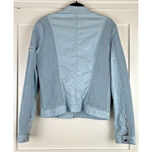 Faux / Vegan Leather Moto Jacket Women's Medium Sky Blue by First Line Collar Pockets.