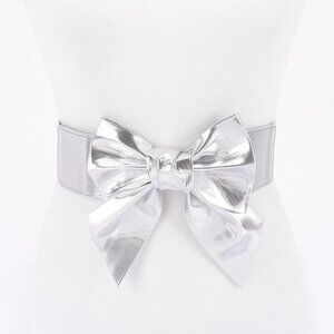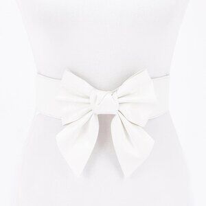 Give your look a polished touch with the Faux Leather Ribbon Elastic Belt. Designed with a wide, comfortable band and finished in smooth faux leather, this belt features a bow-inspired ribbon accent that adds a refined edge. Its stretchable design ensures a snug and flattering fit, whether you're pairing it with a flowy dress or tailored layers. A versatile accessory for any occasion.