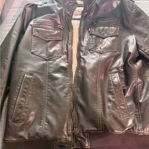 Faux Leather Sherpa Lined Bomber Jacket