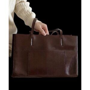 Faux Leather Shoulder Tote Bag Large Capacity Dark Brown