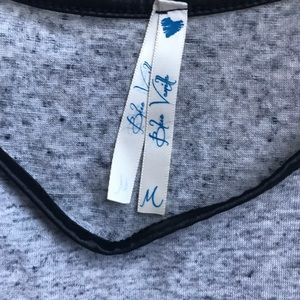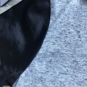 Originally purchased in Scotland, this crop top is comfy yet edgy. Features a gray marled body with faux leather sleeves