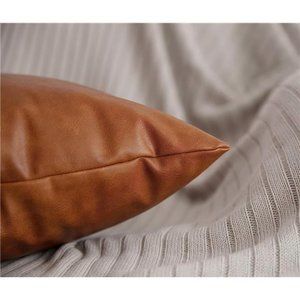 Faux Leather Throw Pillow Covers,18 x 18 inch Set of 2 Thick Cognac Brown Modern