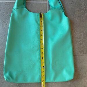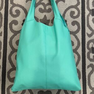 Faux Leather Turquoise Slouchy Tote Bag