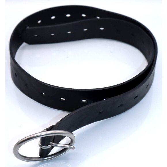 Faux Leather Unisex Belt Black Round Buckle Grunge Gothcore Minimalist