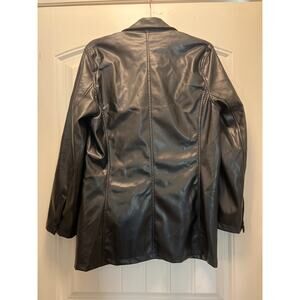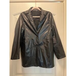Faux Leather Women Oversized Single Breasted Blazer Jacket Size M Black Relaxed