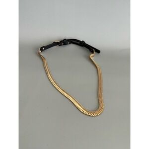 Faux Leather and Gold Tone Fishtail Chain Belt Size Large 32in-37in