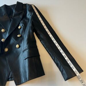 Black Faux Leather double breasted fitted blazer jacket, size XS/S, NWOT