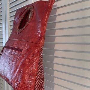 Faux Leather woven studded Large Clutch Purse in Wine Red